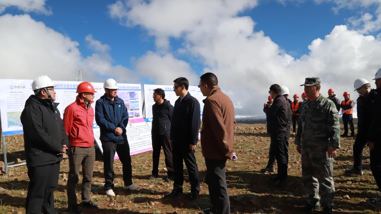 任维一行来到西藏自治区超高海拔风电开发技术研究及科技示范项目措美县哲古镇分散式风电场工程建设地,实地查看、询问了解该项目建设进度、单机容量、建成后发电效益情况,以及存在的困难和问题,听取了三峡集团西藏能源投资有限公司的项目建设情况汇报。