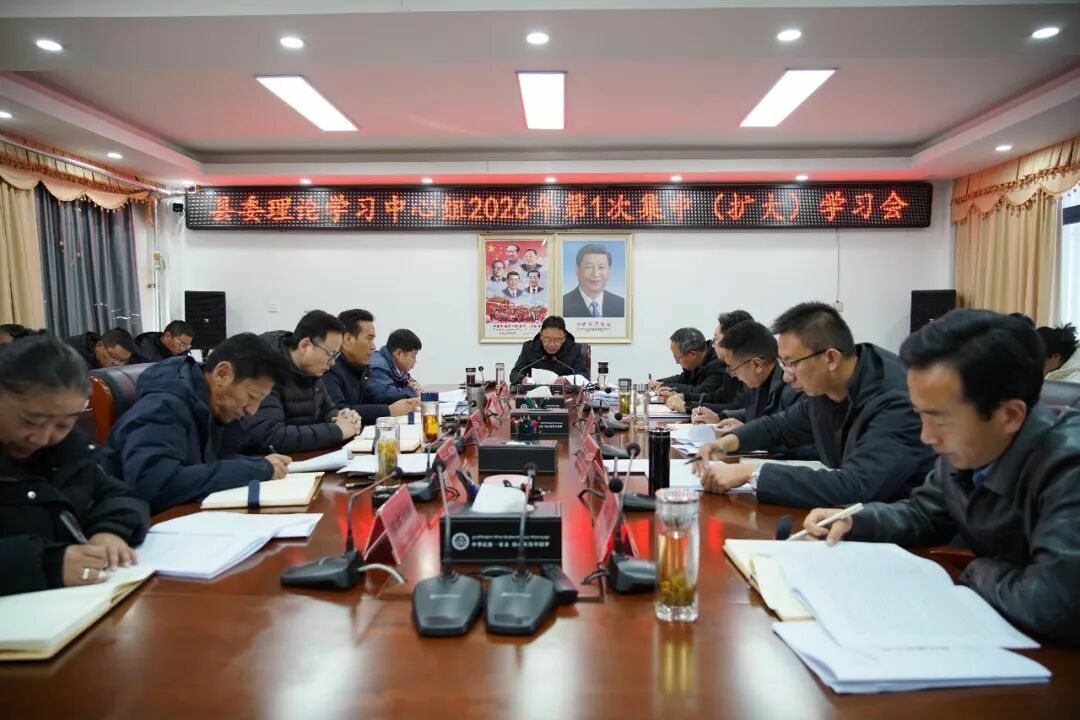 1月14日,措美县召开县委理论学习中心组2026年度第1次集中(扩大)学习会,县委书记桑旦主持,全县在家县委班子成员、县级领导干部、四级及以上调研员,县(中、区、市)直各单位负责人等70余人参加会议。