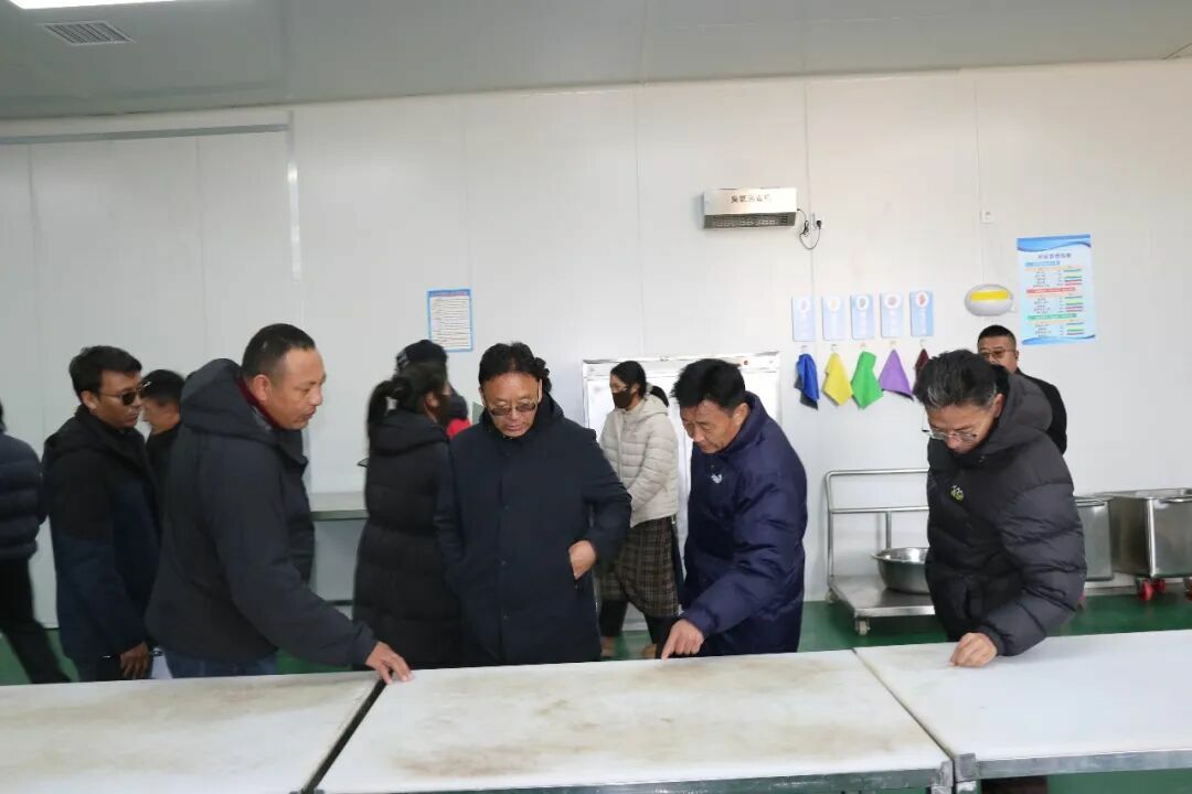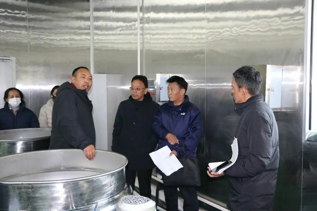 在哲古镇牦牛肉初深加工建设项目点,桑旦一行实地查看了生产车间、质量控制区、冷库、无污染通道等,并严格按照相关整改反馈意见清单,围绕生产场所、设施设备、工艺流程、人员管理、制度建设等6大类41项具体细节,从冷鲜肉入库到成品出库进行了全流程模拟验收。每到一处,桑旦都仔细询问整改细节,与项目负责人和相关同志深入交流,对整改工作中存在的薄弱环节提出明确要求。