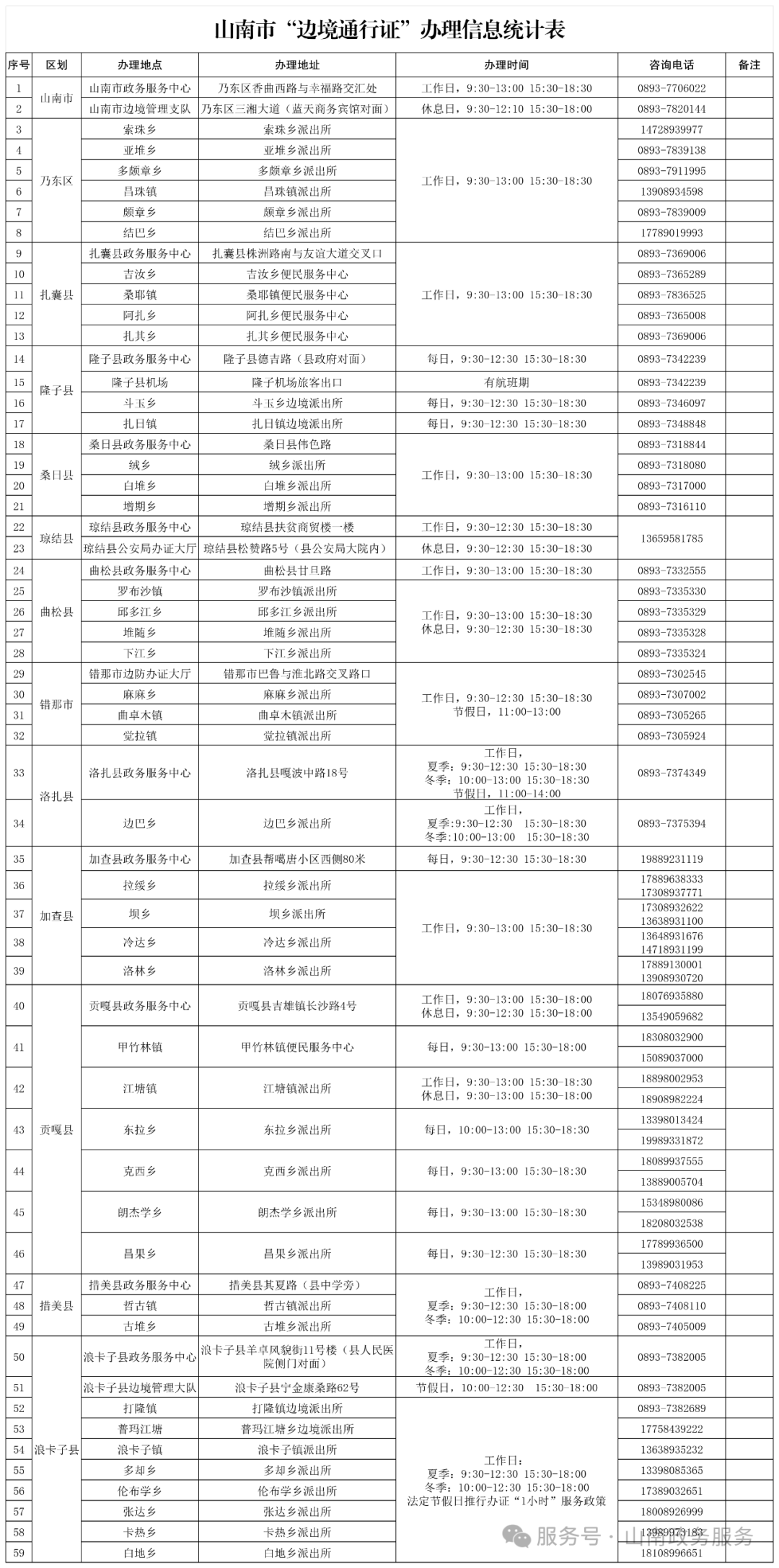 为进一步方便边境通行证办理,我们整理了市、县、乡共59个可办理边境通行证的服务网点(下图),您只需凭身份证前往就近服务网点即可快捷办理。您在办理过程中遇到任何问题也可以与我们联系,我们致力于为您提供优质高效便捷的政务服务!